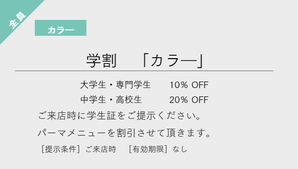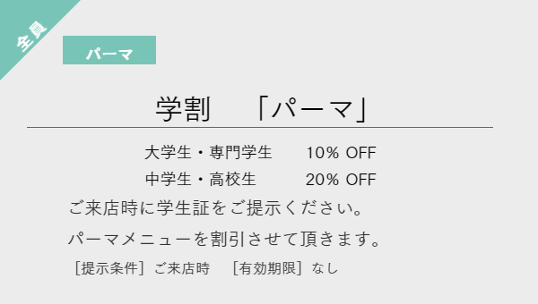 ※カット以外のヘア単体メニューは、シャンプー・ブローは別途料金を頂いております。